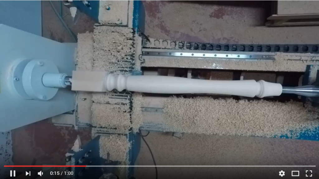 אלפא דרים סרטון המציג חריטת רגלי עץ לשולחן במכונת החיתוך המתקדמת